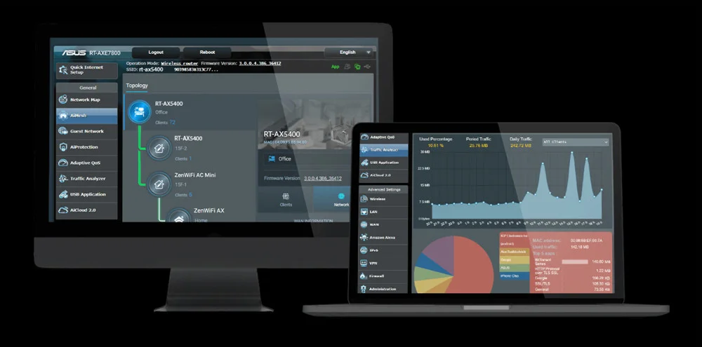 - Kolayca Genişletilebilen Ağ – AiMesh uyumlu bir router ekleyerek zengin ve gelişmiş özelliklerle kesintisiz dolaşımın tadını çıkarın.