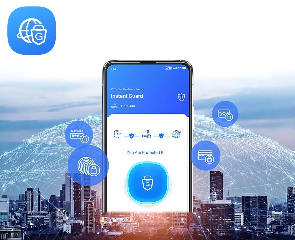 Kafelerde, restoranlarda, otellerde ve havaalanlarında bağlandığınız ücretsiz WiFi ağları genellikle korumasızdır. Bu yüzden siber korsanlar, internette kullandığınız dijital verileri kolaylıkla ele geçirebilir. ASUS Instant Guard mobil uygulaması RT-AX5400 router’ınız aracılığıyla güvenli internet erişimi oluşturmak için tek bir tıkla tüm ücretsiz WiFi bağlantılarına kaya gibi sağlam bir güvenlik ekler. Yeni güncellenen uygulamamız, bir URL bağlantısı aracılığıyla bu ağ bağlantısını aile ve arkadaşlarınızla kolay bir şekilde paylaşabilmenizi sağlar.