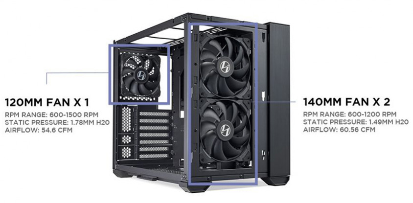 - Önde 2 adet 140mm ve arkada 1 adet 120mm olmak üzere toplam 3 adet dahili PWM fan