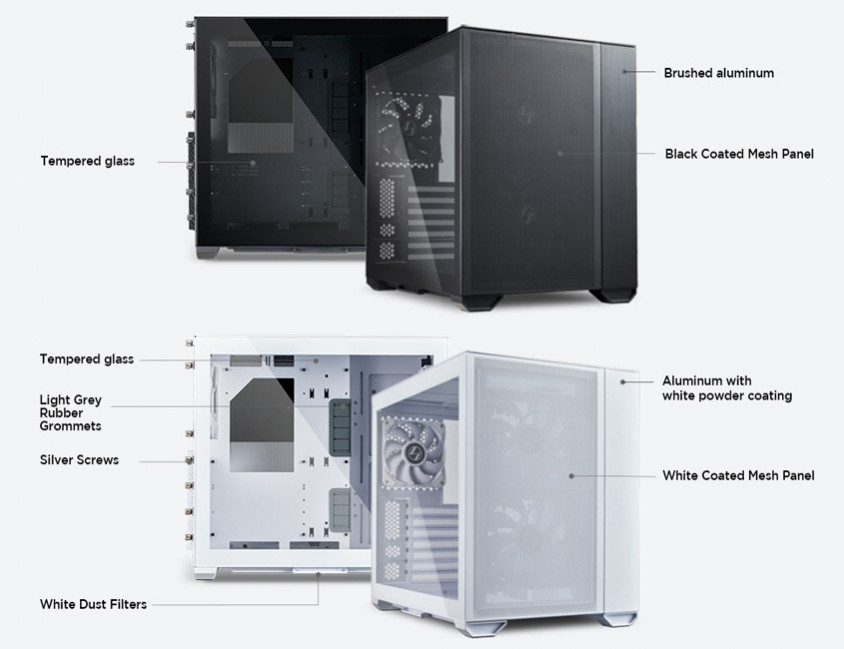 Hissettirdiği kadar iyi görünen birinci sınıf fırçalanmış alüminyum detaylara sahip siyah O11 Air Mini Black ya da minimalist beyaz toz kaplamaya sahip O11 Air Mini White. Hangisi seçerseniz seçin, dayanıklı temperli cam paneli sayesinde tüm sistem bileşenlerinizi gururla sergileyeceğinizden emin olabilirsiniz.