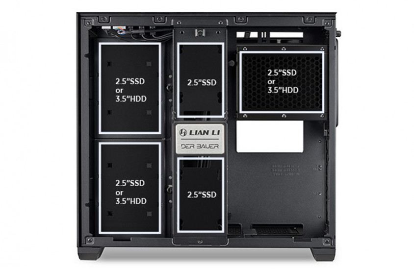 O11 Air Mini, anakart tepsisinin arkasında toplam 6 adede kadar 2.5” SSD veya 4 adet 3.5” HDD ve 2 adet 2.5” SSD kurulum desteği sunan geniş depolama kapasitesine sahiptir.