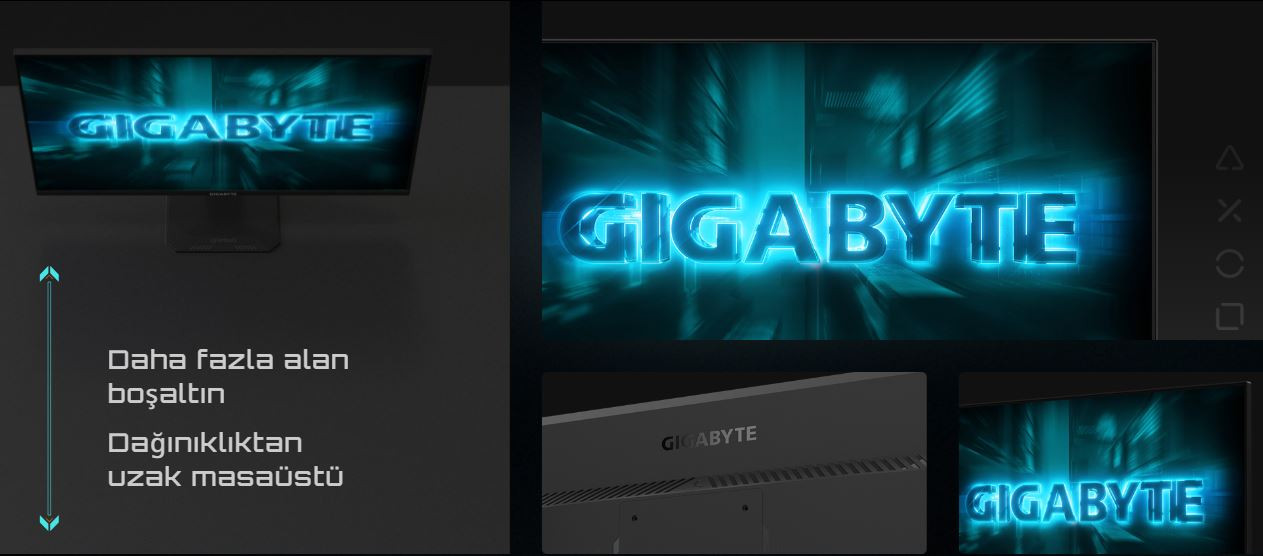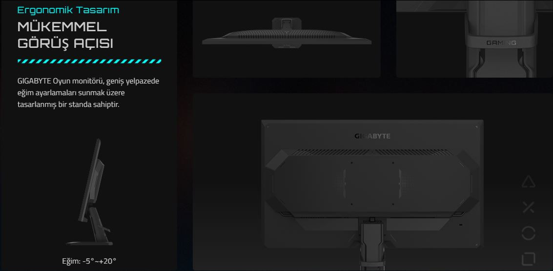 GIGABYTE Oyun monitörü, geniş yelpazede eğim ayarlamaları sunmak üzere tasarlanmış bir standa sahiptir.
