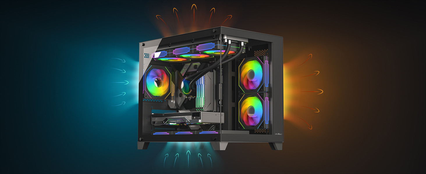 3 adet dahili ARGB infinity fan ile donatılmış Stark S700, 9x 120mm fana kadar destek sunar. Hava akışını en üst seviyeye çıkarın ve maksimum soğutma performansına ulaşın!