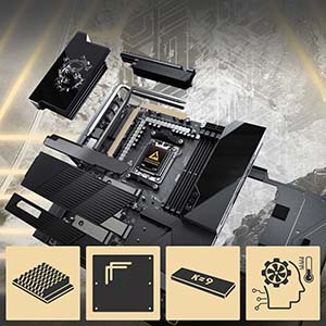 MSI MEG X870E Godlike, pasif soğutmalı VRM ve M.2 yuvaları ile uzun süreli stabilite sağlar. MSI Frozr Ai Cooling ve arka plaka desteği, sistemin serin ve sessiz çalışmasına yardımcı olur. RGB LED aydınlatma ve Mystic Light Sync ile kişiselleştirme seçenekleri geniştir. Dayanıklı bileşenler ve gelişmiş soğutma çözümleri, güvenli ve uzun ömürlü bir bilgisayar deneyimi sunar.