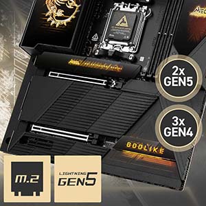 MSI MEG X870E Godlike'da yer alan toplam beş adet M.2 yuvası, hem Gen5 hem de Gen4 teknolojileriyle uyumludur. 2260, 2280 ve 22110 boyutlarındaki SSD'lerle uyumlu slotlar sayesinde, depolama kapasitenizi ve hızınızı dilediğiniz gibi artırabilirsiniz. PCIe Gen5x4 ve Gen4x4 desteğiyle, çoklu depolama aygıtlarında bile yüksek performans elde edilir. Kolay montaj ve genişletilebilir mimari, profesyonel kullanıcılar için ideal bir platform sunar.
