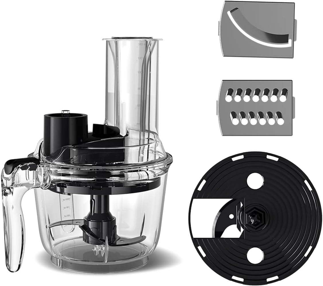 - Çırpma, karıştırma, doğrama, rendeleme ve parçalama fonksiyonları ile tam donanımlı bir el tipi blender seti deneyimi yaşatır.
