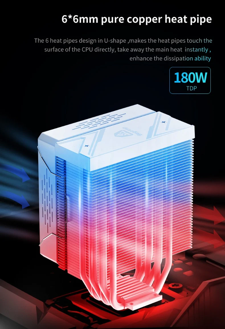U şeklindeki 6 ısı borusu tasarımı, ısı borularının doğrudan CPU yüzeyine temas etmesini sağlar. Ana ısıyı anında uzaklaştırır, dağıtma yeteneğini geliştirir.