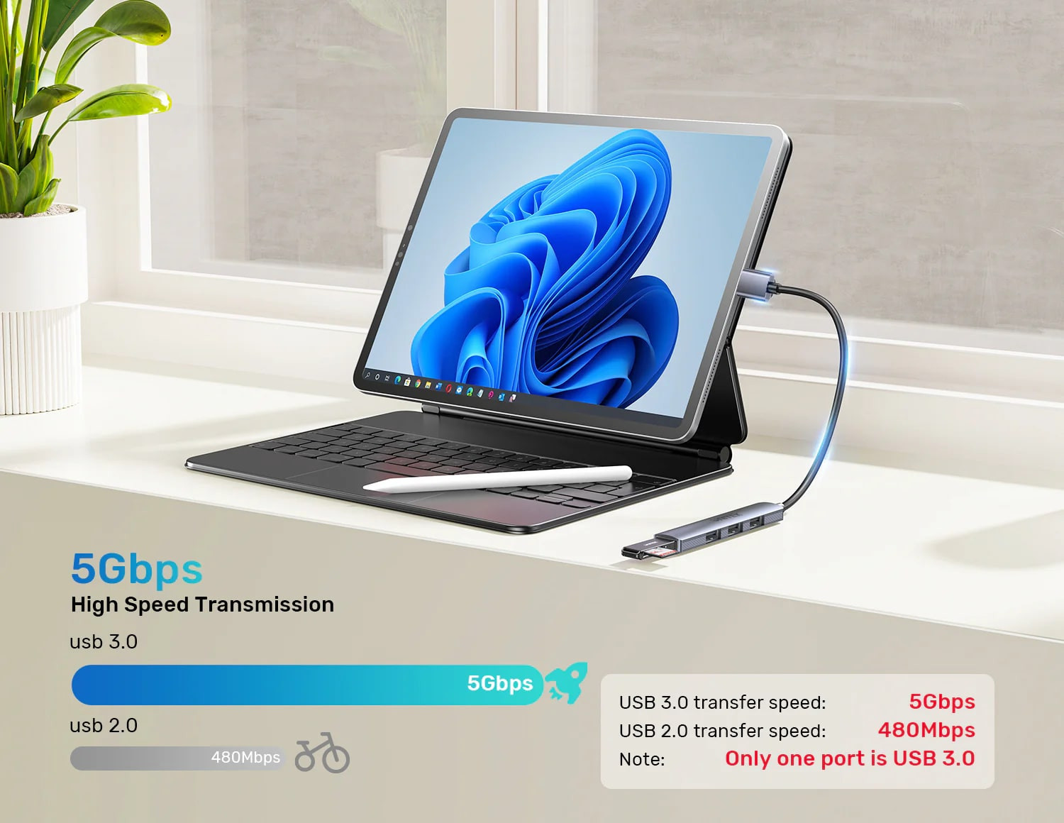 Ultra İnce 4 Bağlantı Noktalı USB Hub