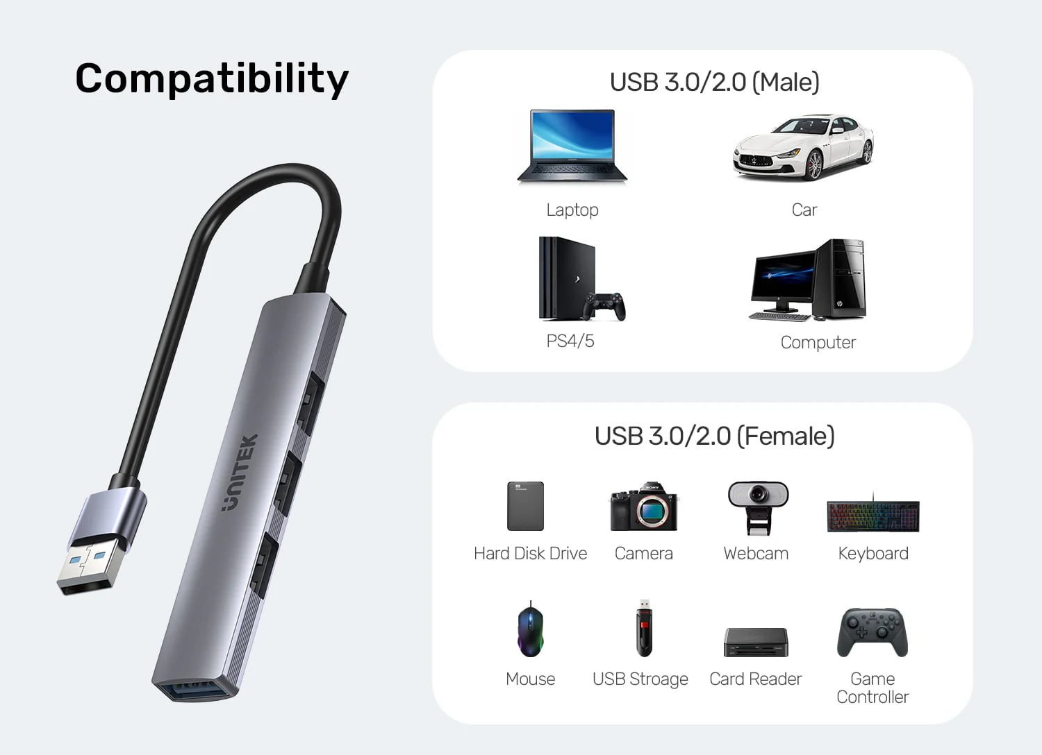 - UNITEK TYPE-A TO 4 PORT USB (USB3.0+USB2.0) H1208A 9,45 $
