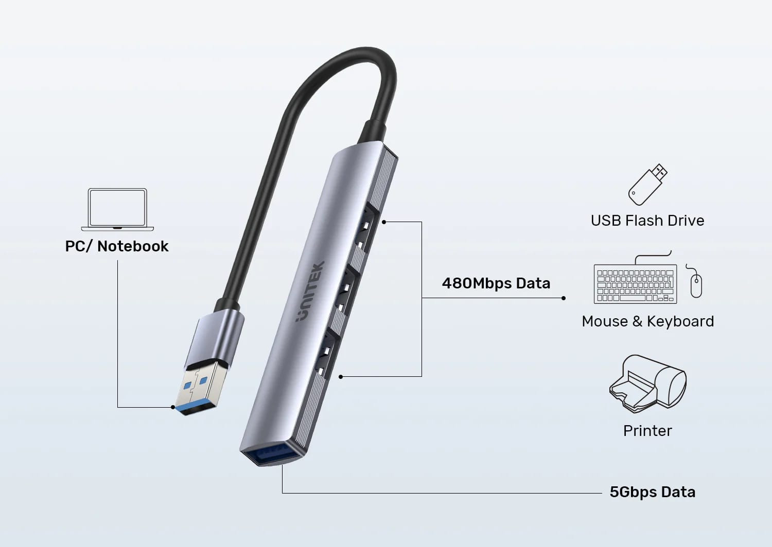 UNITEK TYPE-A TO 4 PORT USB (USB3.0+USB2.0) H1208A