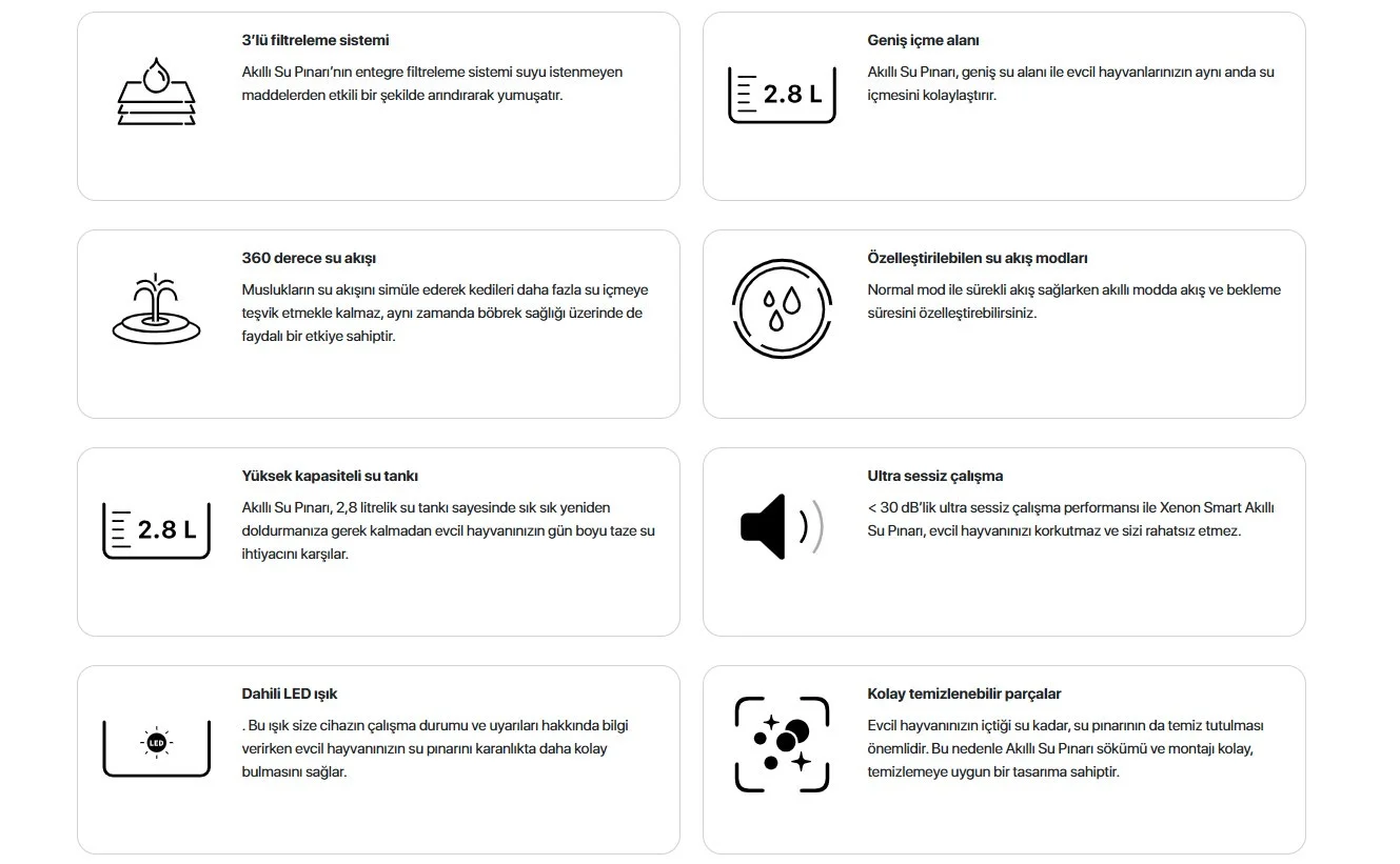 Xenon Smart Akıllı Wifi Destekli Kedi Su Pınarı Genel Özellikler
