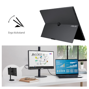 Ergo Kickstand sayesinde monitörünüzü farklı açılarda konumlandırabilir, +15° ile +35° arasındaki eğme ve sağa–sola döndürme fonksiyonlarından yararlanabilirsiniz. 1/4" tripod yuvası, sunumlar ve toplantılar için kişiselleştirilmiş pozisyonlama imkânı sunar. Standlı ölçüleri 359.9 mm genişlik, 226.8 mm yükseklik ve yalnızca 11.9 mm kalınlık olan bu taşınabilir ASUS monitör, ergonomik stant sistemiyle profesyonel kullanıcılara konforlu ve esnek bir deneyim sağlar.