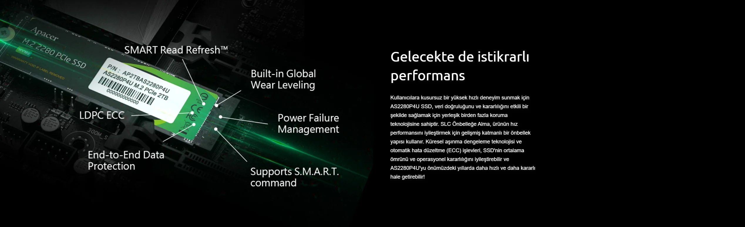 Kullanıcılara kusursuz bir yüksek hızlı deneyim sunmak için AS2280P4U SSD, veri doğruluğunu ve kararlılığını etkili bir şekilde sağlamak için yerleşik birden fazla koruma teknolojisine sahiptir. SLC Önbelleğe Alma, ürünün hız performansını iyileştirmek için gelişmiş katmanlı bir önbellek yapısı kullanır. Küresel aşınma dengeleme teknolojisi ve otomatik hata düzeltme (ECC) işlevleri, SSD'nin ortalama ömrünü ve operasyonel kararlılığını iyileştirebilir ve AS2280P4U'yu önümüzdeki yıllarda daha hızlı ve daha kararlı hale getirebilir!