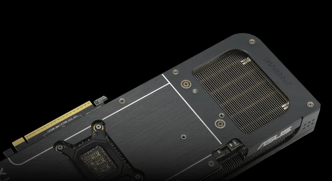Prime GeForce RTX 5080, üç adet eksen teknolojili fanın ekran kartının yan havalandırmasından en iyi şekilde faydalanması ve en uygun termal performans sunması için özenle planlanmış koruma, soğutma bloğu ve ısı borusu düzeniyle 2,5 yuva yer kaplayan tasarıma sahip.