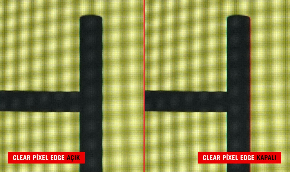Clear Pixel Edge algoritması, metin veya çizgilerdeki yeşil ve kırmızı renk sapmasını azaltarak daha iyi okuma deneyimi sunar. Ek olarak, XG27AQDMGR metin kalitesini artırmak için en yeni RGWB alt piksel düzenine sahip.