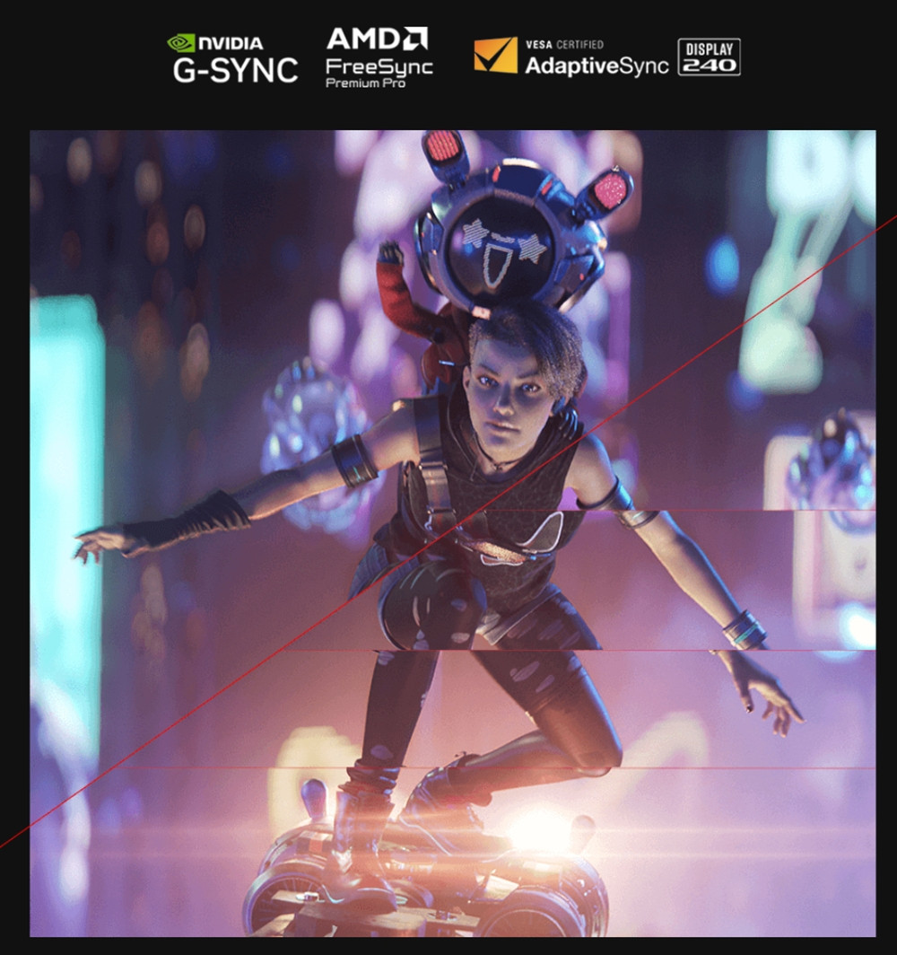XG27AQDMGR, AMD FreeSync™ Premium Pro teknolojisi ve NVIDIA G-SYNC™ uyumluluğu ile akıcı ve yırtılmalardan uzak düşük gecikmeli görüntüler garantiler.