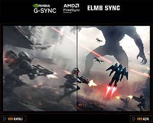 - AMD FreeSync Premium, NVIDIA G-SYNC Compatible ve ELMB Sync teknolojileriyle pürüzsüz ve kesintisiz oyun deneyimi yaşatır.