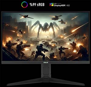 ASUS TUF Gaming VG259QMRL5A monitör, VESA DisplayHDR 400 ve HDR10 desteği ile daha parlak beyazlar, daha derin siyahlar sunar. %99 sRGB kapsamı sayesinde renk doğruluğu üst düzeydedir. Geniş 178° izleme açısı, her açıdan tutarlı görüntü kalitesi sağlar. Bu sayede, oyunlarda ve filmlerde gerçekçi ve etkileyici bir görsel deneyim yaşanır.