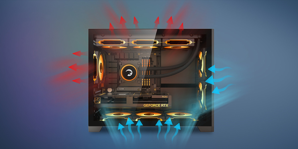 Toplam 9 adet 120 mm fan desteği sayesinde farklı soğutma ihtiyaçlarına göre esnek konfigürasyon imkânı sunar. Sessiz veya yüksek performanslı sistemler için ideal bir altyapı oluşturur.