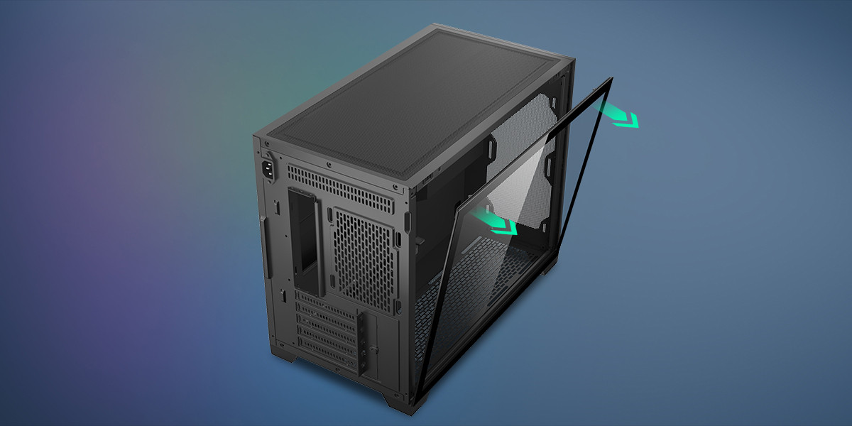 Temperli cam yan panel, herhangi bir alet gerektirmeden kolayca açılabilir. Bakım, temizlik ve donanım değişimleri hızlı ve zahmetsiz hale gelir.