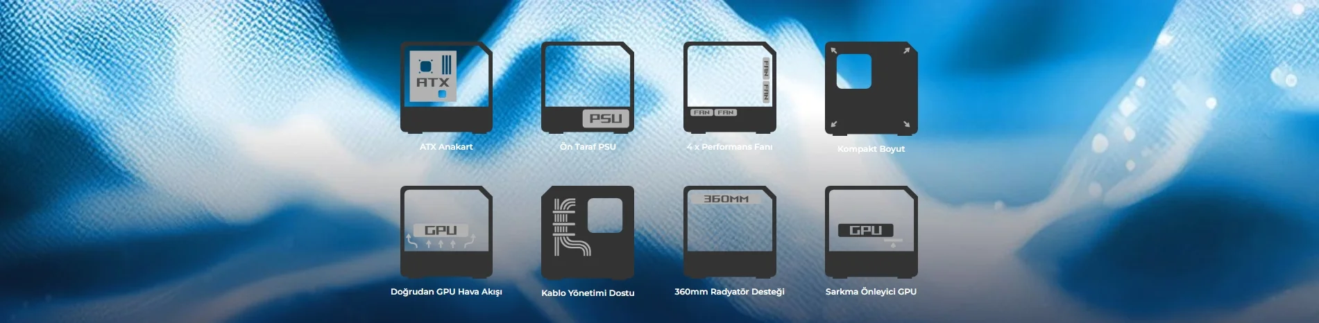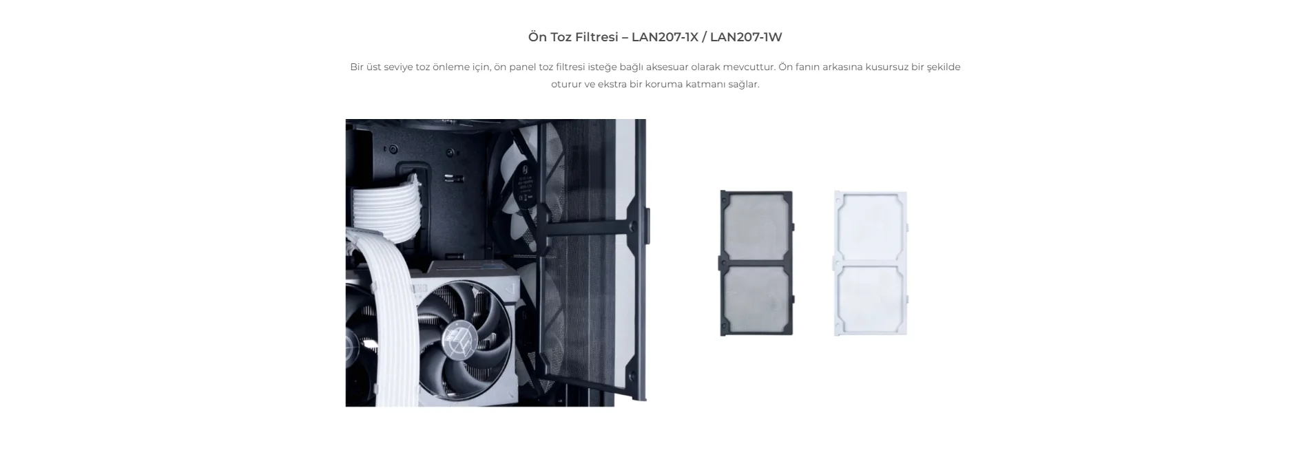 Bir üst seviye toz önleme için, ön panel toz filtresi isteğe bağlı aksesuar olarak mevcuttur. Ön fanın arkasına kusursuz bir şekilde oturur ve ekstra bir koruma katmanı sağlar.TEKNİK ÖZELLİKLER