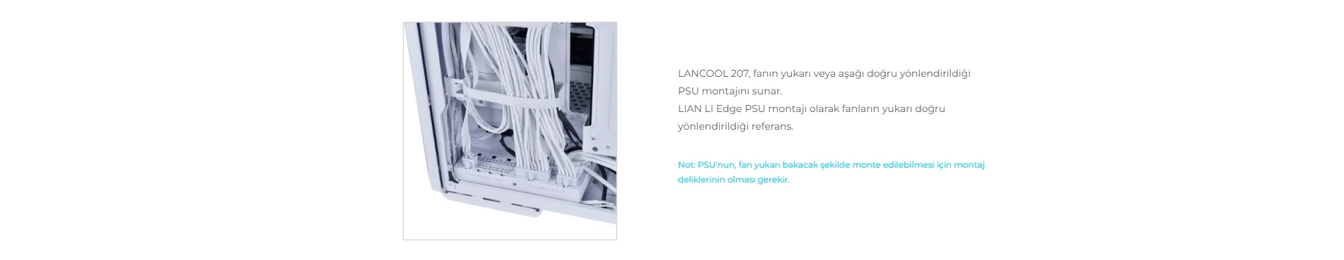 LANCOOL 207, fanın yukarı veya aşağı doğru yönlendirildiği PSU montajını sunar