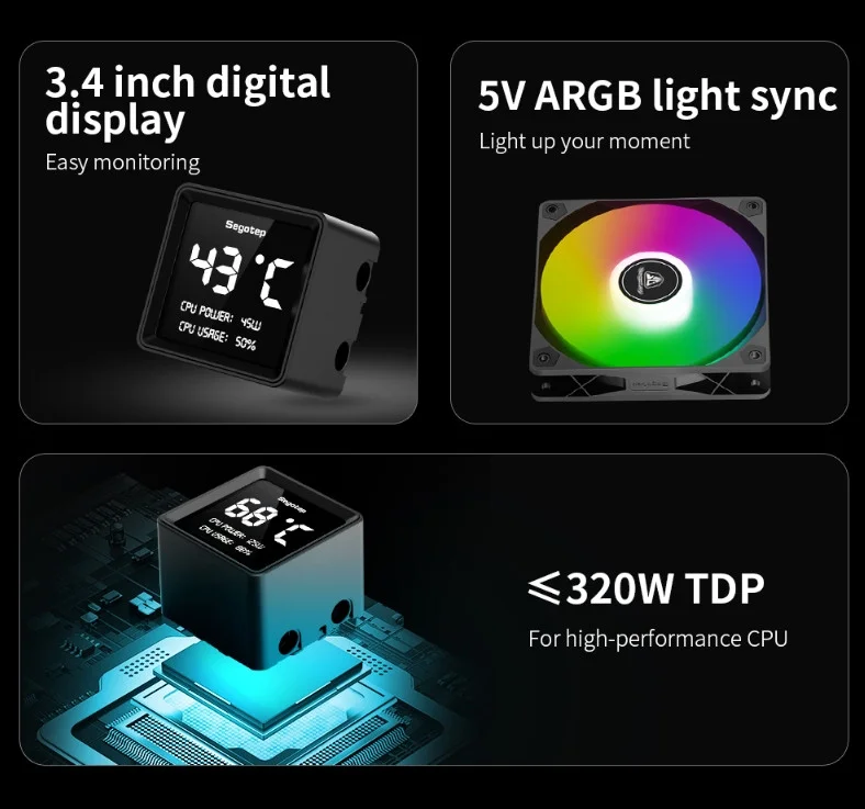 - SEGOTEP BeVere 240mm ARGB Siyah Sıvı Soğutucu 114,45 $