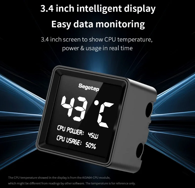CPU sıcaklığını, gücünü ve kullanımını gerçek zamanlı olarak gösteren 3,4” Ekran