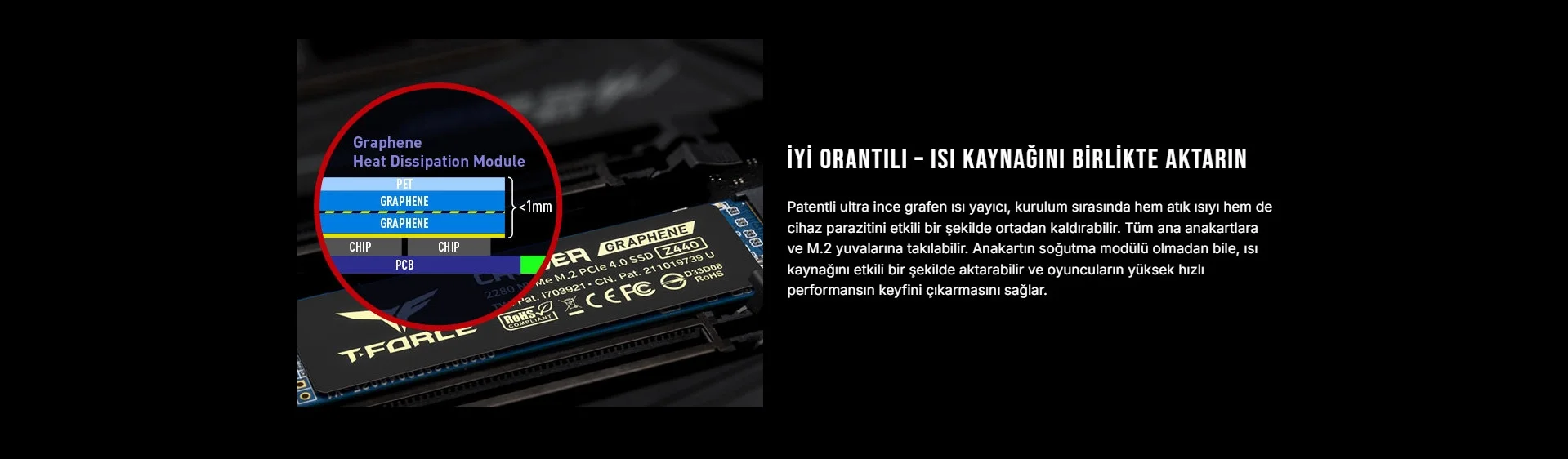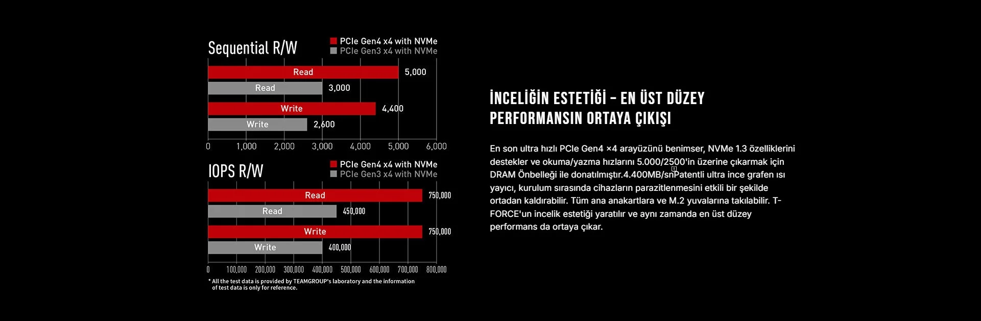 En son ultra hızlı PCIe Gen4 x4 arayüzünü benimser, NVMe 1.3 özelliklerini destekler ve okuma/yazma hızlarını 5.000/2500'in üzerine çıkarmak için DRAM Önbelleği ile donatılmıştır.4.400MB/snPatentli ultra ince grafen ısı yayıcı, kurulum sırasında cihazların parazitlenmesini etkili bir şekilde ortadan kaldırabilir. Tüm ana anakartlara ve M.2 yuvalarına takılabilir. T-FORCE'un incelik estetiği yaratılır ve aynı zamanda en üst düzey performans da ortaya çıkar.